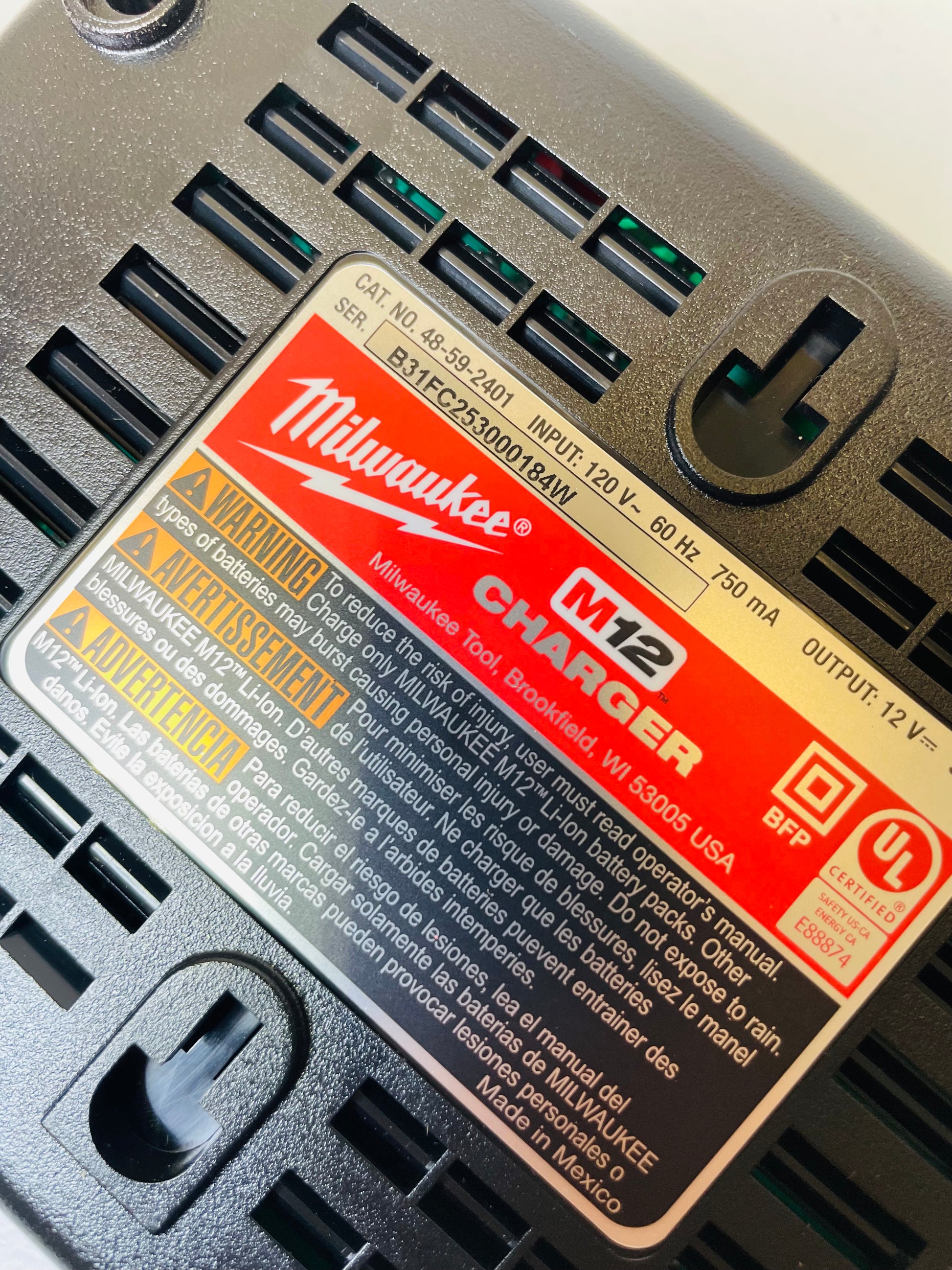 M12 charger offers recharge-statues light indicators and an easy-to-load design
